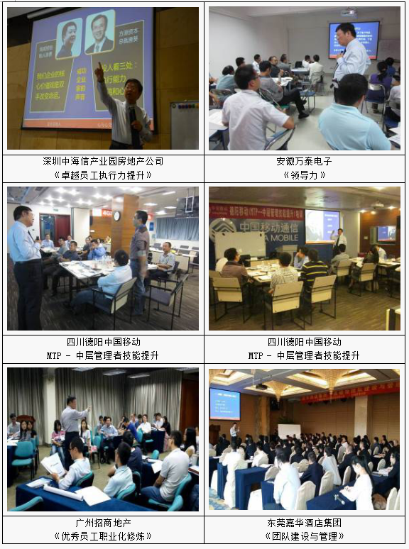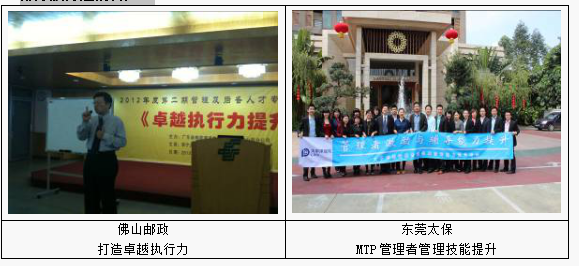 三一集團、深圳郵政、佛山郵政、合肥郵儲、深圳南油集團、深圳名雕集團、中國寶安集團(8期)、深圳索佳集團、山西豐喜集團(2期)、香港建滔化工集團、深圳東江環(huán)保集團、惠州中訊集團(2期)、中煤集團張家口煤礦機械、江蘇蘇美達輕紡國際貿(mào)易(央企)、廣汽工程研究院、山東豐和集團、深圳燃氣集團、中鐵國際、大慶油田、合肥汽運、上海航天、深圳大鵬液化天然氣、牛山煤礦、廣東719地質(zhì)大隊……