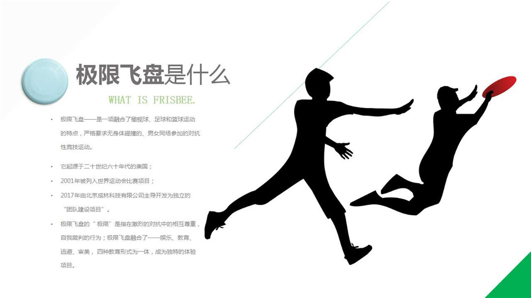 極限飛盤——是一項融合了橄欖球、足球和籃球運動的特點,嚴(yán)格要求無身體碰撞的、男女同場參加的對抗性競技運動。