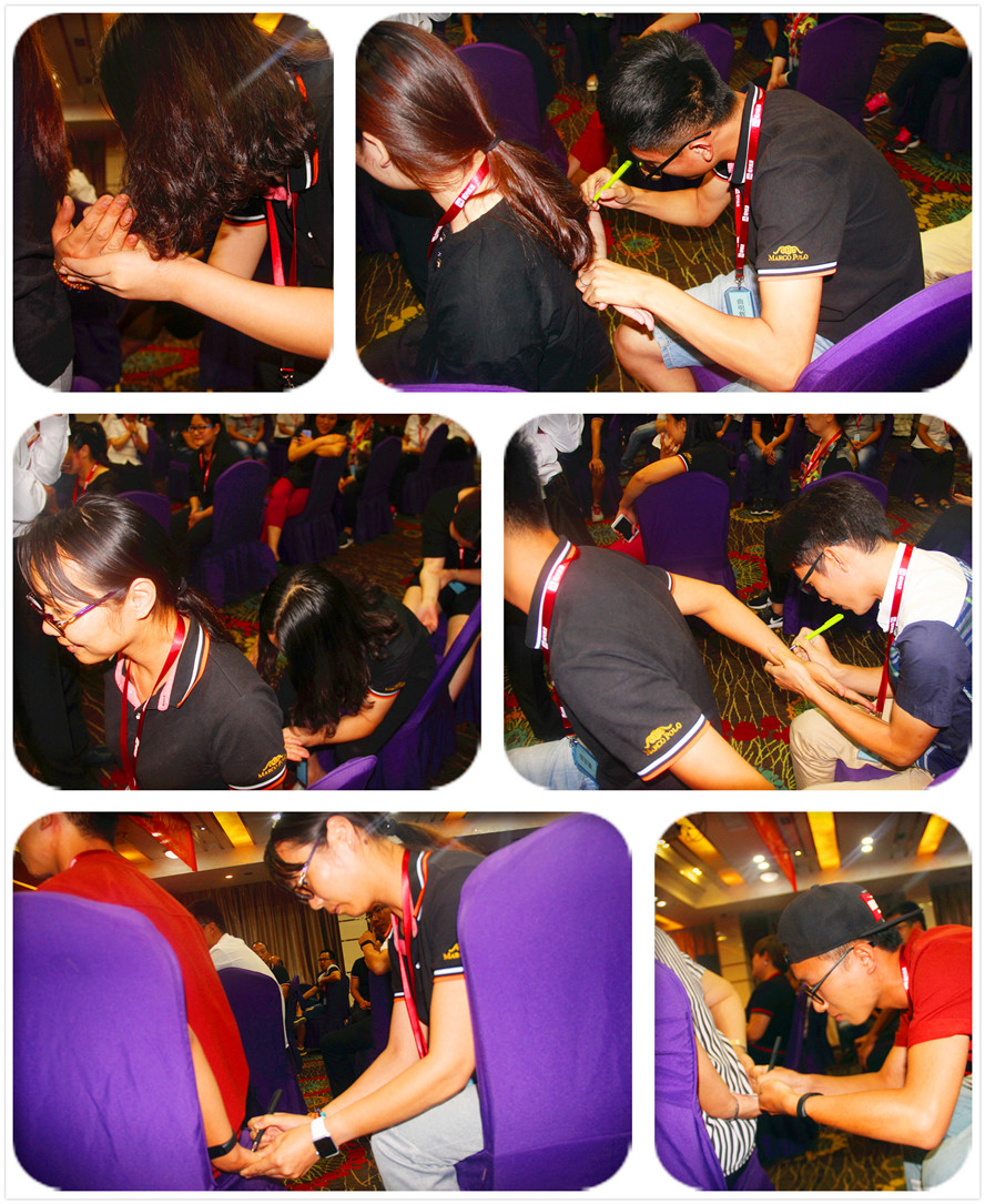 游戲環(huán)節(jié)不斷地將氣氛推向高潮,學(xué)員在體驗(yàn)的同時(shí)也同時(shí)思考著:聆聽、注意力、反應(yīng)力這三者的關(guān)系,貫穿到工作中來(lái),也是相通的!