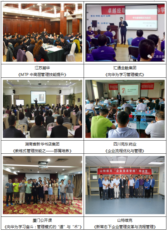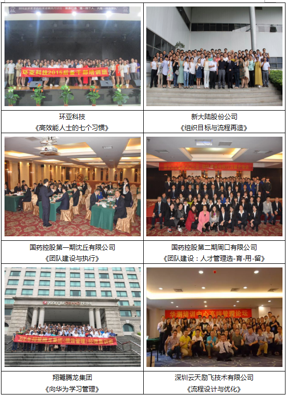 中國移動、沈飛集團(tuán)、東風(fēng)汽車、九州通醫(yī)藥集團(tuán)、建設(shè)銀行、農(nóng)業(yè)銀行、華電集團(tuán)、敬業(yè)集團(tuán)等上百家知名企業(yè)特聘講師