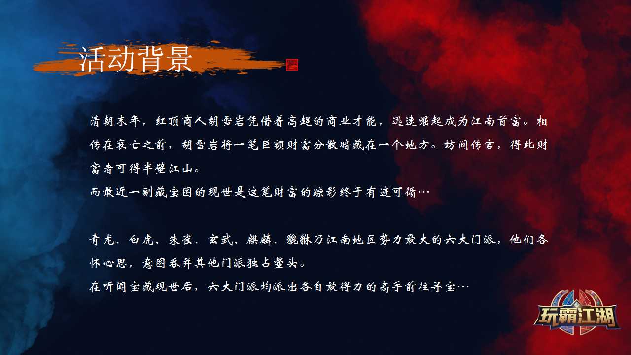 清朝末年,有一位江南首富,他死前將畢生財富暗藏在一個地方,坊間傳言,得此財富者可得半壁江山。在聽聞寶藏現(xiàn)世后,六大門派均派出各自最得力的高手前往尋寶… 玩霸江湖,天下英雄分為六大派,亂江湖風(fēng)云,決戰(zhàn)玩霸之巔,能不能一枝獨(dú)秀就看你們團(tuán)隊(duì)給不給力啦!